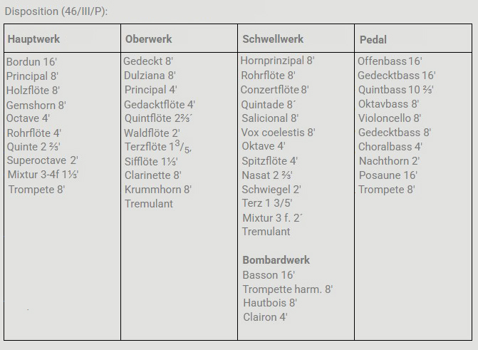 Die Pedalmixtur entfiel zu Gunsten einer Pedaltrompete 8´.