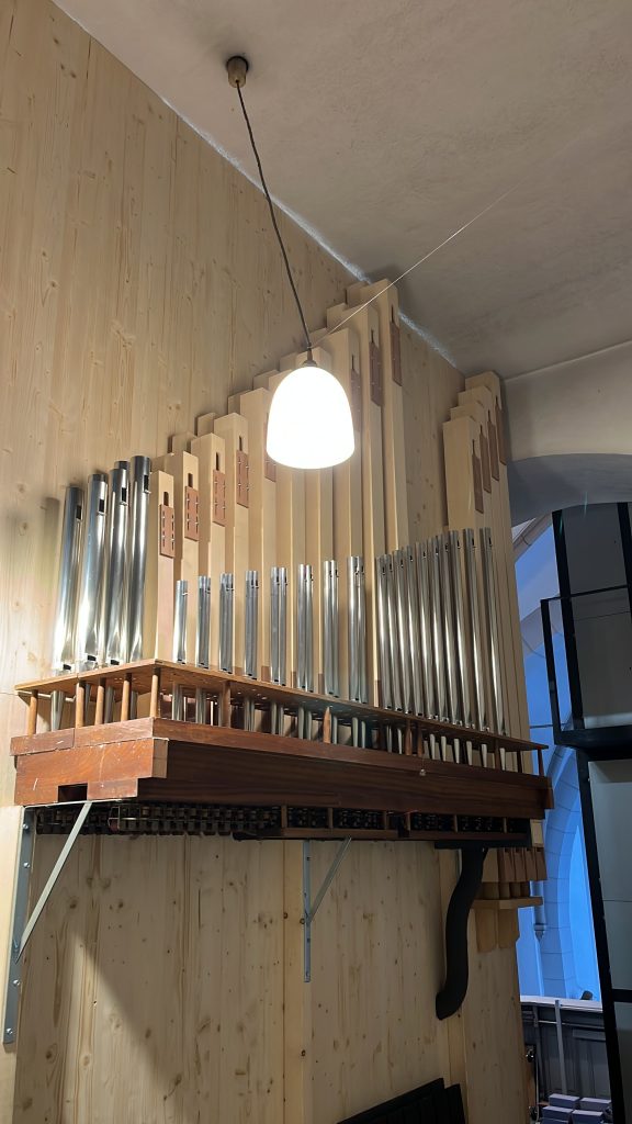 In diesem Zuge sind auch noch ein Principal 16´ – der sowohl im Pedal als auch im Manual spielbar ist – und eine Harmonieflöte 8´ die vom I. und dem II. Manual gespielt werden kann ergänzt.